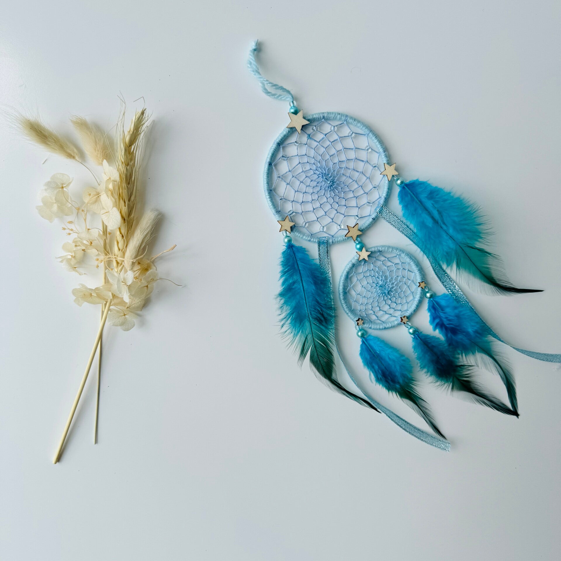 Avec ses nuances de bleus, cet attrape rêves sublimera votre intérieur..