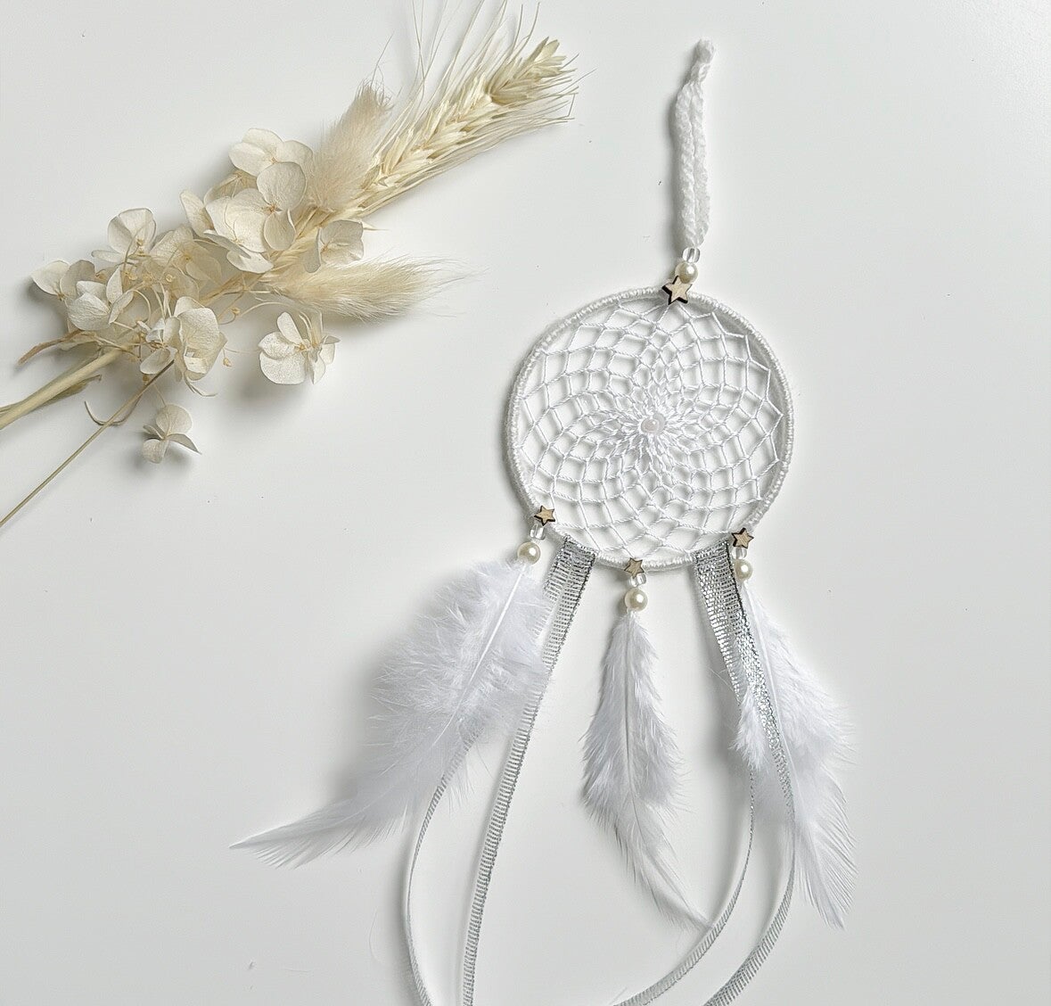 Grâce à sa petite taille, cet attrape rêves se suspendra facilement dans votre voiture, vous accompagnant lors de vos déplacements.