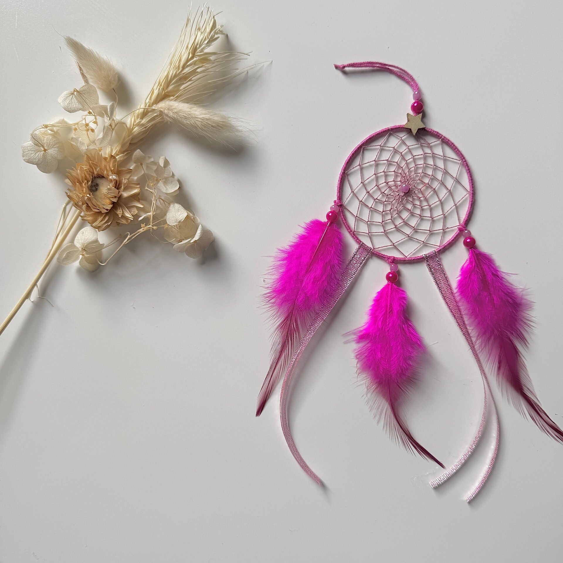 Grâce à sa petite taille, cet attrape rêves se suspendra facilement dans votre voiture, vous accompagnant lors de vos déplacements.