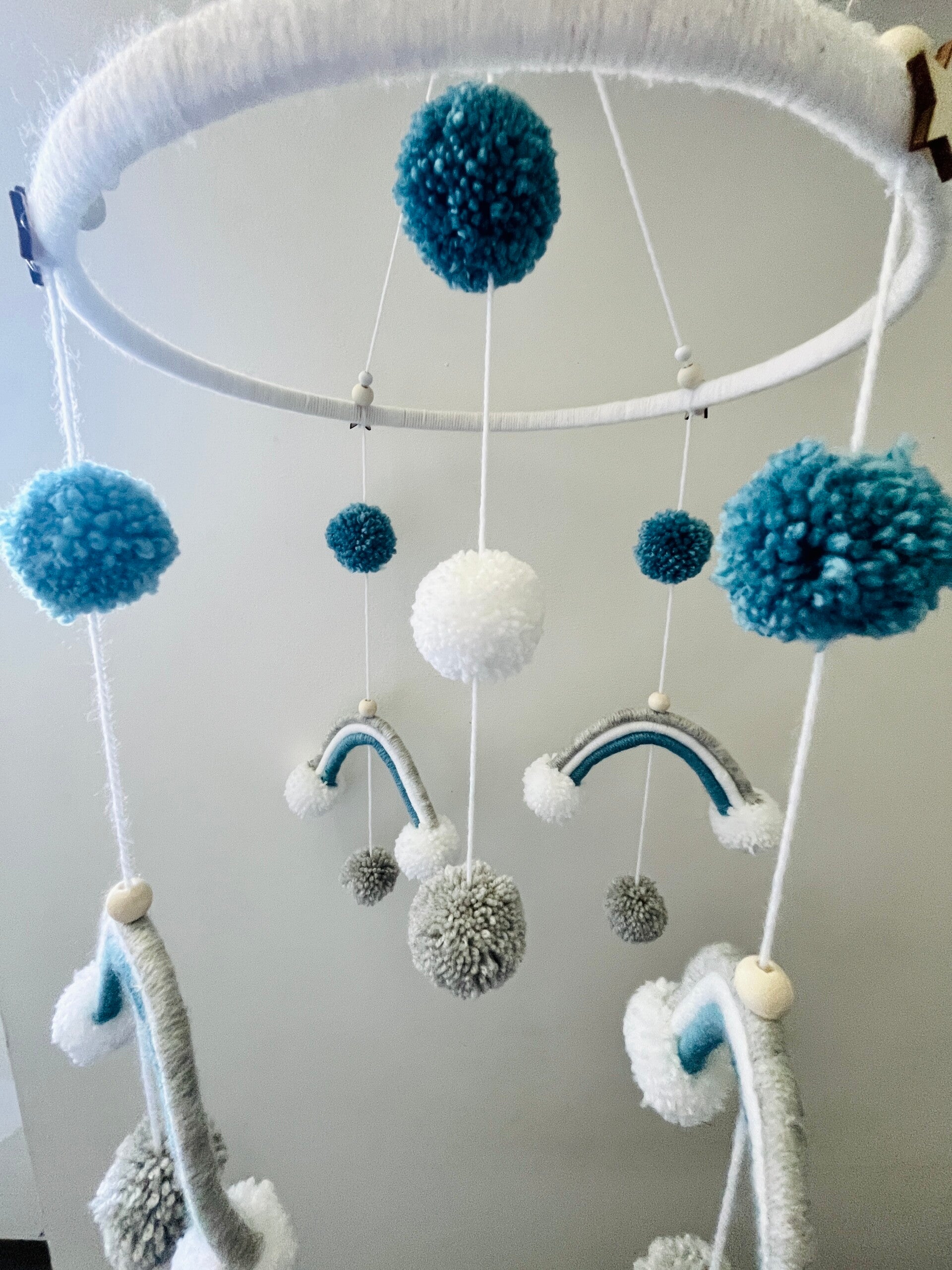 Un plafond d'arcs-en-ciel, de perles et de pompons, de quoi émerveiller bébé avant de faire de jolis rêves.
