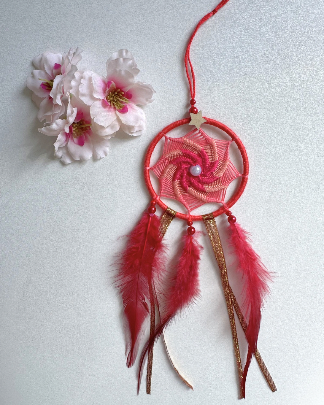 Cet attrape rêve est entièrement réalisé à la main, chaque pièce est unique et créée avec soin pour garantir la qualité et la durabilité du produit.